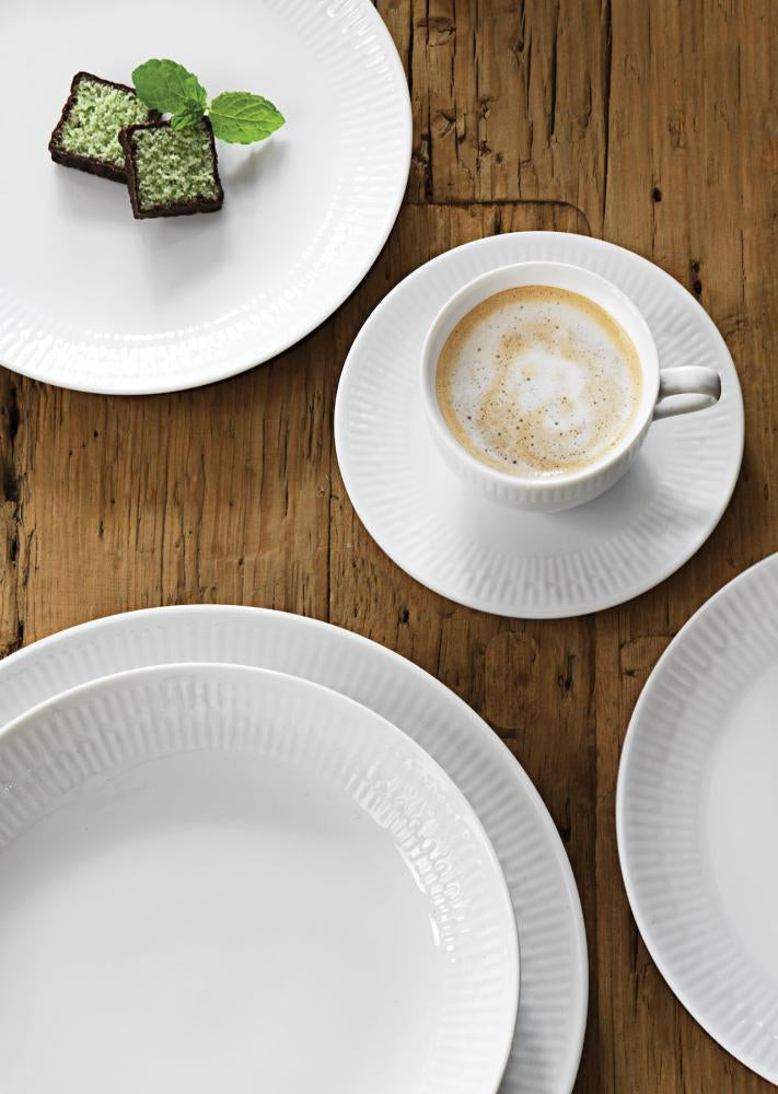Kjennetegnet på Relief-serien er den fine hvite porselenskvaliteten med den stilfulle detaljen i form av et klassisk mønster på kanten. Dekorasjonen er tidløs, diskret og har et moderne og enkelt uttrykk.