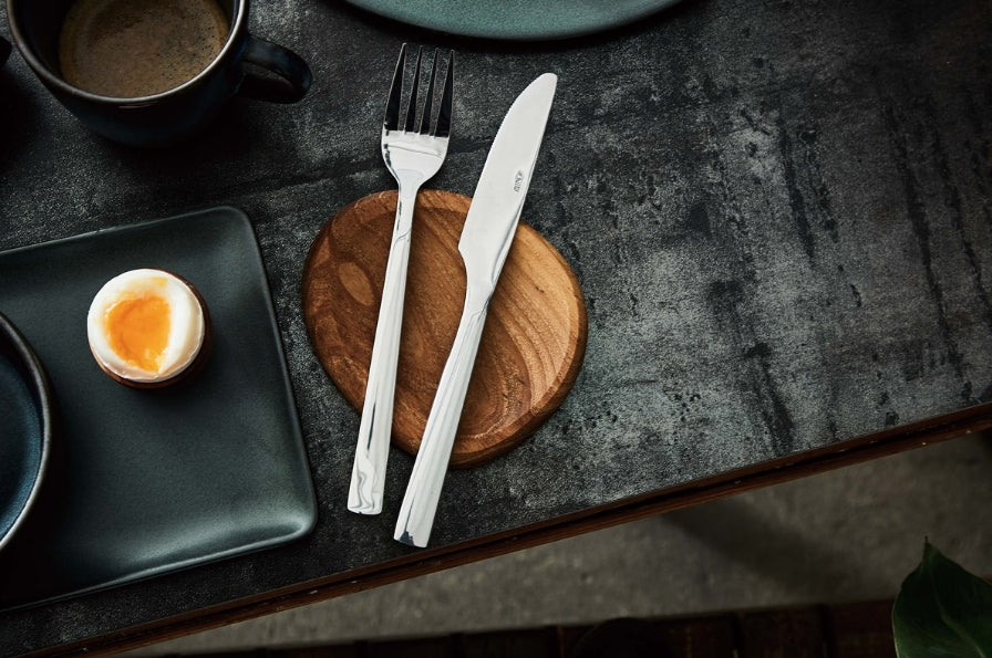 RAW-serien fra Aida er designet i samarbeid med den danske skuespilleren Christiane Schaumburg-Müller. Serien er skapt for å kunne passe både hverdagslige middager og festlige feiringer. Uansett om stilen din er klassisk eller moderne, vil dette bestikksettet være et elegant og tidløst innslag på spisebordet.