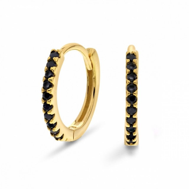 Øreringer i forgylt sølv med sort zirkonia fra Arne Nordlie. B: 2 mm. H: 16 mm.