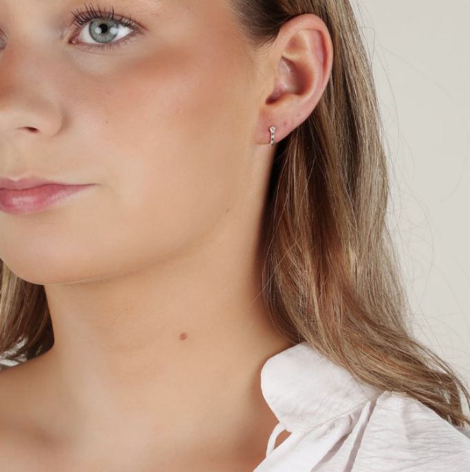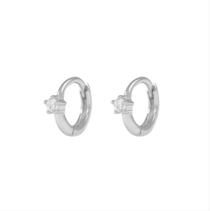 Siri Mini øreringer i forsølvet messing med zirkonia. Små øreringer med innfatning. Et subtilt, men sofistikert tilbehør. Diameter: 8 mm. Sten: 2 mm. Nikkelfri.