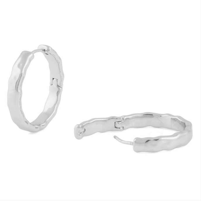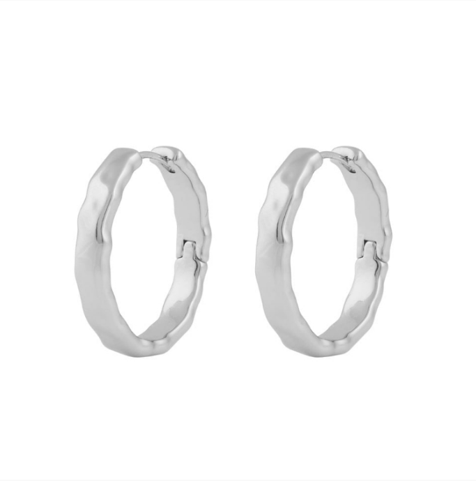 Øreringer med en myk bølgeform, laget i forsølvet messing. 20 mm. Bredde: 4,2 mm. Nikkelfri.