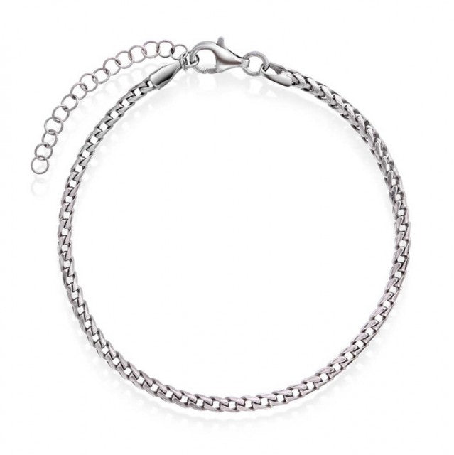 Armbånd i rhodinert sølv. L: 16+3cm, B: 2,5mm.