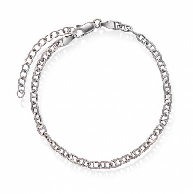 Anker-armbånd i rhodinert sølv. L: 16+3cm, B: 3,33mm.