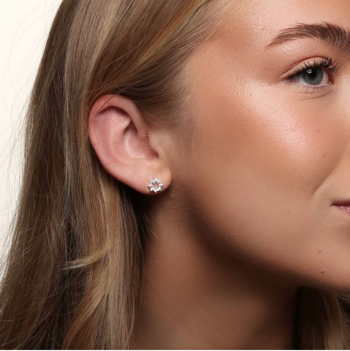 Wish øredobber i gullbelagt messing med zirkonia. Størrelse: 9 mm. Nikkelfri.