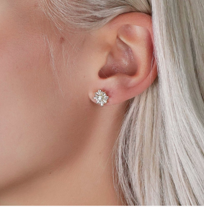 Søt liten pinneøredobb med zirkonia i forgylt messing. Et fint tillegg til ethvert antrekk. Størrelse: 10 mm. Nikkelfri.