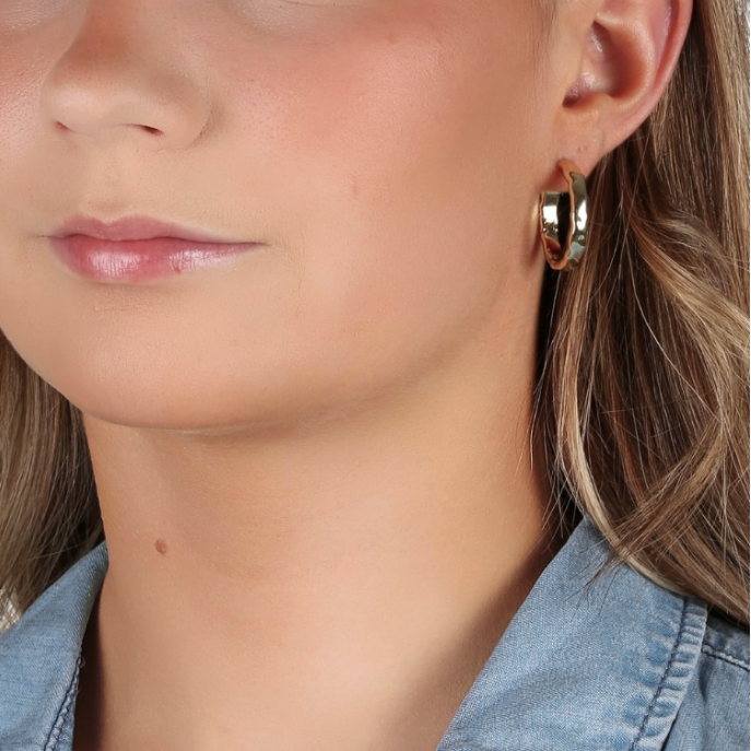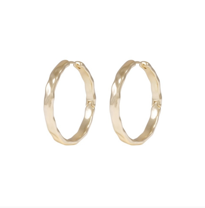 Øreringer med en myk bølgeform, laget i forgylt messing. 20 mm. Bredde: 4,2 mm. Nikkelfri.