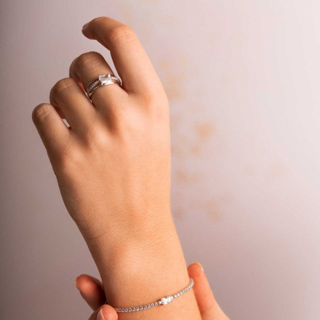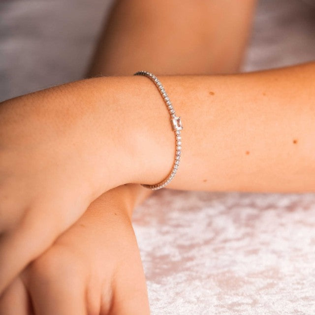 Roma armbånd i rhodinert sølv med hvite zirkonia.