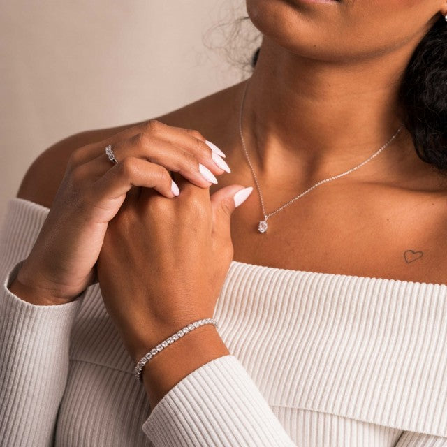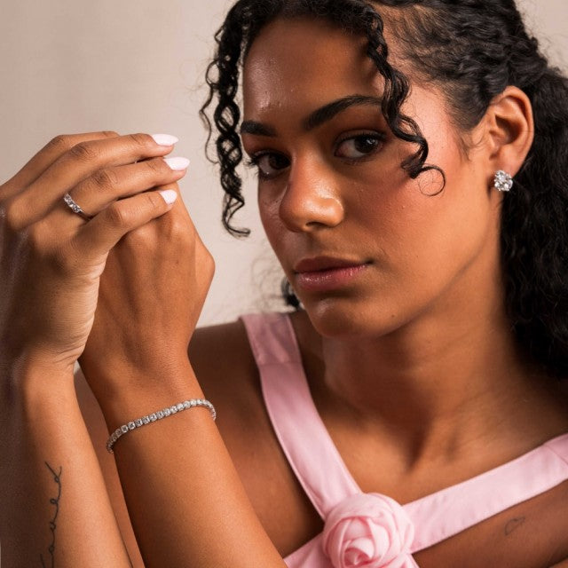 Farah armbånd i rhodinert sølv med hvite zirkonia, fra kolleksjonen Glow by Gulldia.