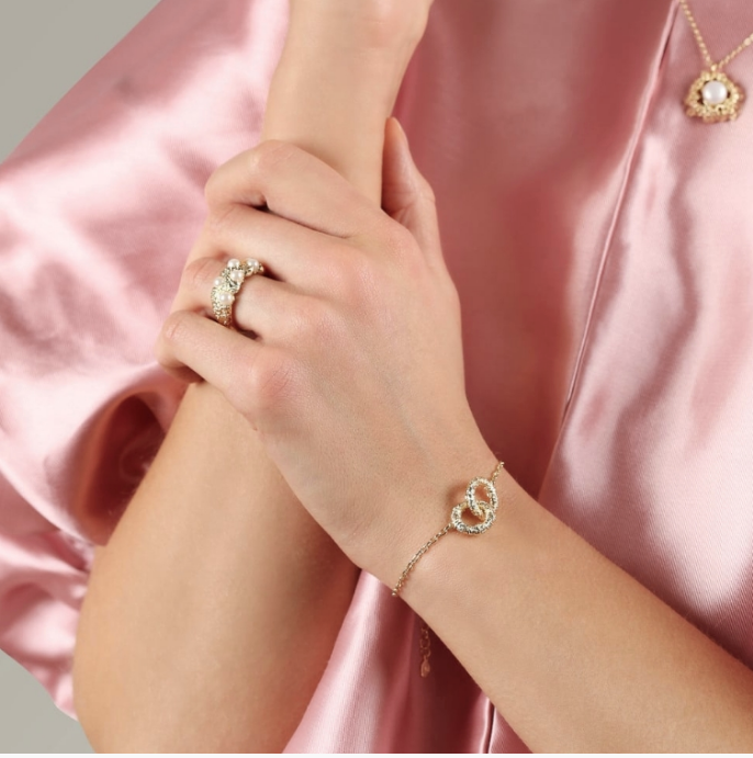 Gisele armbånd i forgylt messing. Lengde: 16–17,5 cm. Sammenkoblede ringer: 15 mm. Nikkelfri.