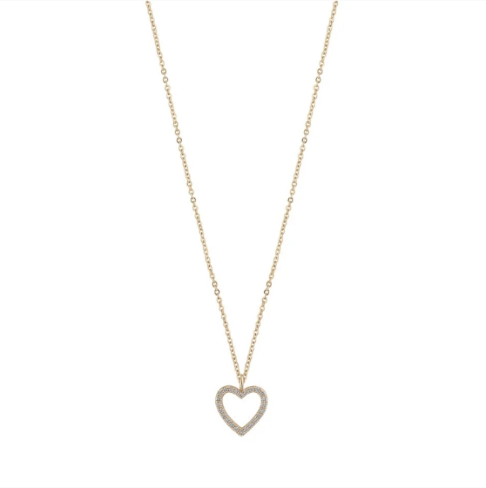 Et søtt halskjede med anheng formet som et hjerte med blanke zirkonia. En perfekt gave til noen du liker litt ekstra godt. Også nydelig å bruke sammen med matchende armbånd og øredobber fra samme serie Valentina. Lengde: 42 cm. Anheng: 12 mm. Nikkelfri.