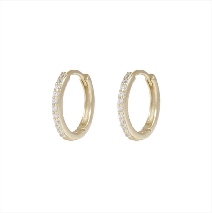 Små øreringer med glitrende steiner. Et elegant og allsidig tilbehør, laget i forgylt messing med zirkonia. Lengde: 12 mm. Bredde: 1,5 mm. Nikkelfri.