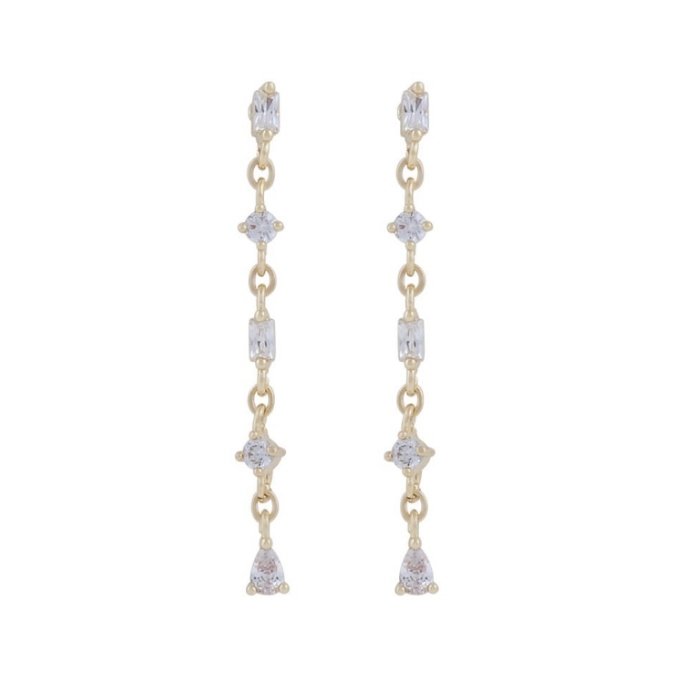 Envy Chain øredobber i forgylt messing med blanke zirkonia. Lengde: 35 mm. Bredde: 4 mm. Nikkelfri.
