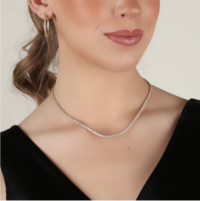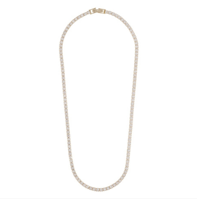 Siri halskjede fra Snö Of Sweden i gullbelagt messing, dekorert med små zirkoniastener som omkranser hele lenken. Det elegante smykket er 42cm langt og gir et sofistikert uttrykk enten det brukes alene eller sammen med andre halskjeder. B: 3mm. Nikkelfri.