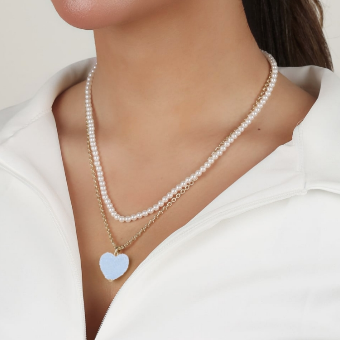 SUGAR HEARTS FORGYLT HALSKJEDE, LYS BLÅ