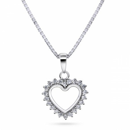 Smykke i rhodinert sølv med zirkonia, Hjerte. Veneziansk kjede i sølv på 42+3 cm medfølger.