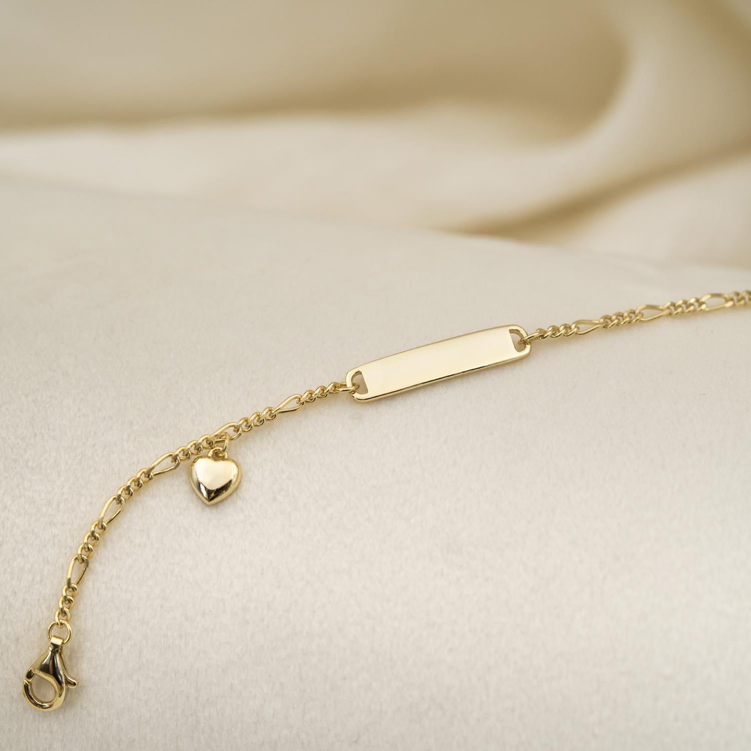 Vakkert armbånd med figaro kjede og graveringsplate. Fåes tilsvarende i rhodinert.