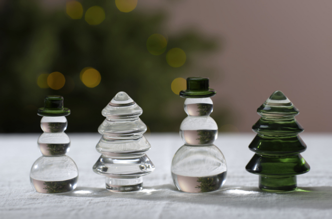 Julestemning og tradisjoner går ofte hånd i hånd. Snømann og grantre er glassfigurer som, med sitt skinnende glass, reflekterer lyset i rommet og skaper varme juleminner. Designer teresa bergerud ønsket å utvikle tradisjonelle julefigurer med et enkelt og minimalistisk uttrykk, inspirert av geometriske former. Snømannen er selvsagt laget av kuler, mens grantreet består av kjegleformer. Sammen med julefiguren husnisse bidrar de til en hyggelig og stemningsfull juledekorasjon.