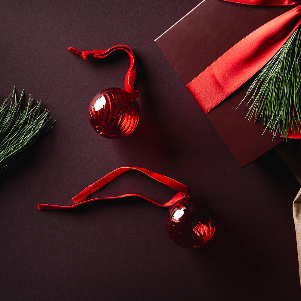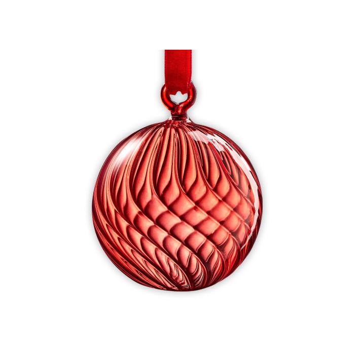 Nydelig glasskule med fløyelsbånd, som finnes i ulike farger. Kan henges på juletreet eller på en dekorativ gren.