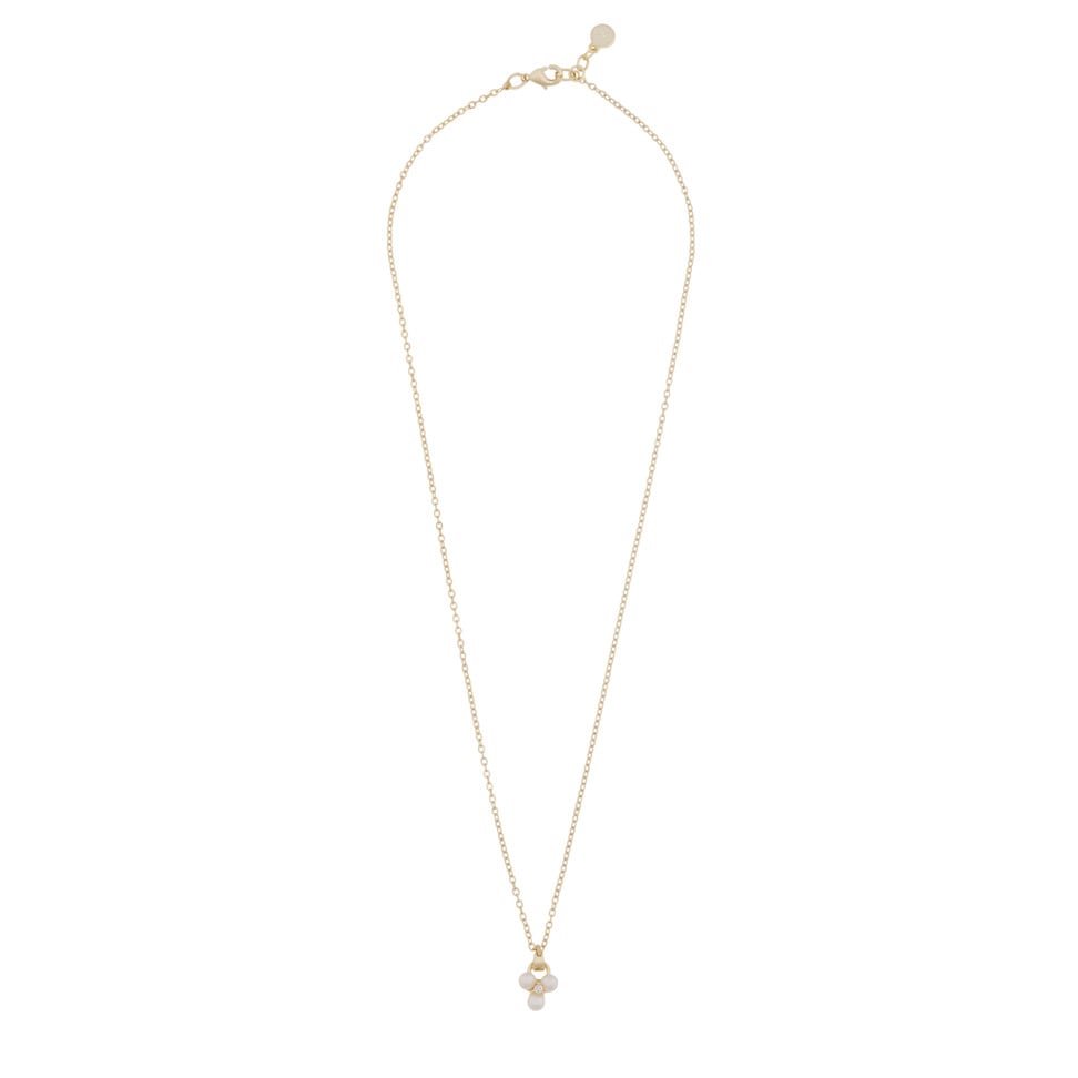 Eira Tripple Pearl er et delikat smykke med anheng dekorert med tre syntetiske perler og en glitrende kubisk zirkonia i midten. Designet kombinerer enkel eleganse med feminin sjarm, og passer like godt til hverdagsbruk som til festlige anledninger. Kjedet er laget av nikkeltestet messing, og belagt med 14K gull. Lengden på 45 cm gjør det perfekt som et klassisk halskjede som hviler pent på brystet.