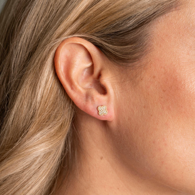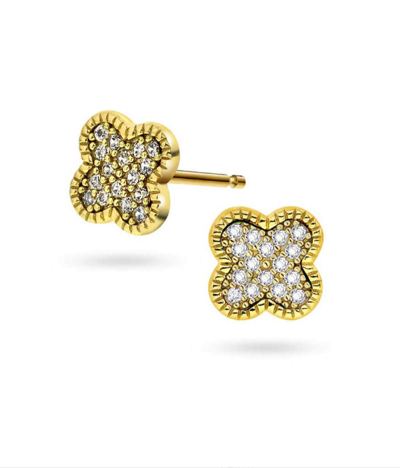 Lekre øredobber i forgylt sølv med kløver i zirkonia.