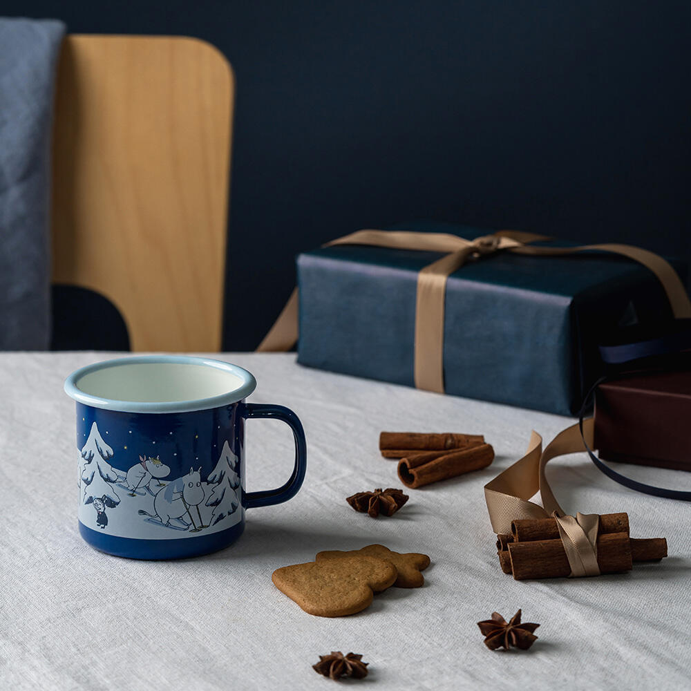 Emaljekoppen har en myk kantovergang for å skape en behagelig overflate å drikke fra. Emaljekoppen er godkjent for bruk på komfyr, induksjonsplate, ovnen og i oppvaskmaskin. Ikke godkjent for bruk i mikrobølgeovn.