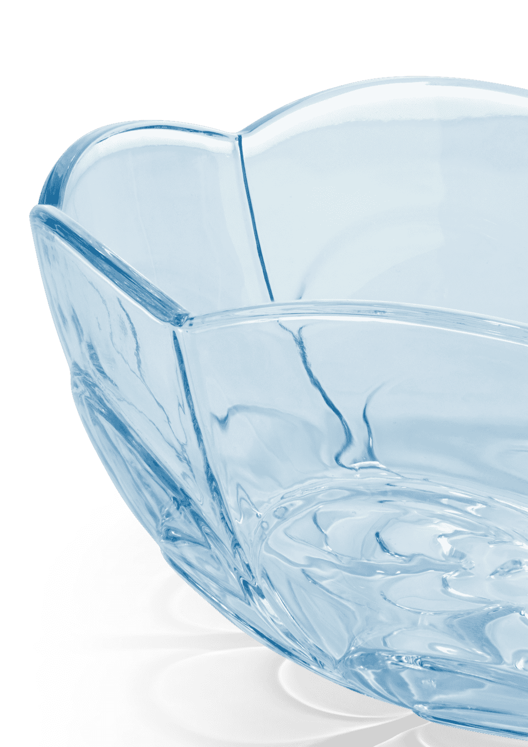 Skålen kan vaskes i oppvaskmaskin, så du kan bruke den daglig uten å bekymre deg for å måtte vaske den opp for hånd. Serien inneholder også en mindre skål, desserttallerken og vannglass - alle i fire forskjellige farger. Alle delene i Lily-serien er laget av farget glass, slik at fargen holder seg vakker over tid.