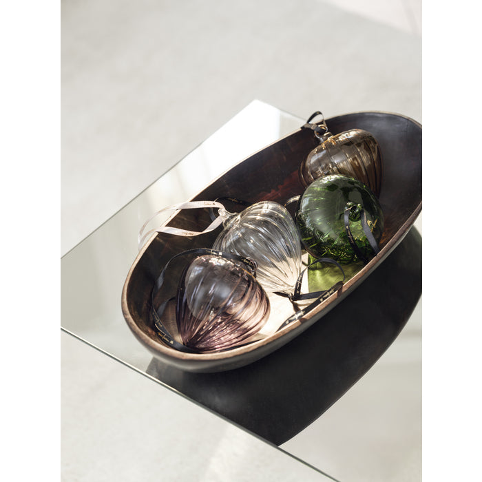 Munnblåst og håndlaget i 10 cm størrelse, er Hazel et lite kunstverk der organisk form møter glassets rene eleganse. Den optiske dekoren gir et eksklusivt uttrykk, og de fire aktuelle fargene – klar, koks, topas og grønn – gjør den til et stemningsfullt blikkfang i ethvert hjem.