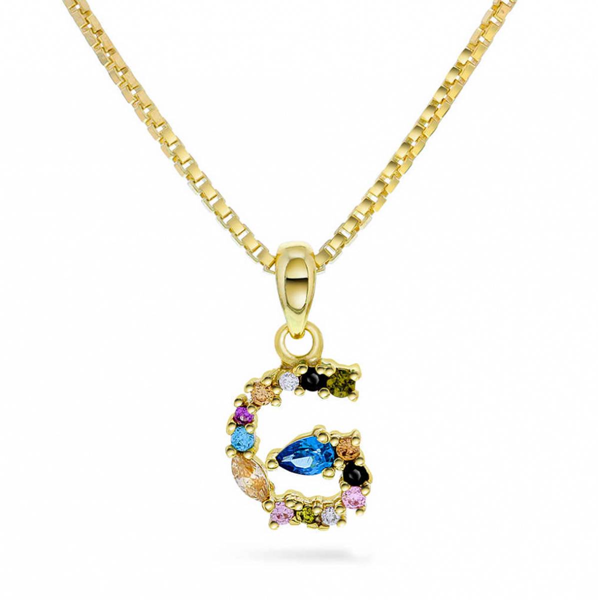 Bokstavsmykke i forgylt sølv med flerfarget zirkonia. En personlig og fin gave. Veneziansk kjede i forgylt sølv på 45cm medfølger, samt gaveeske.