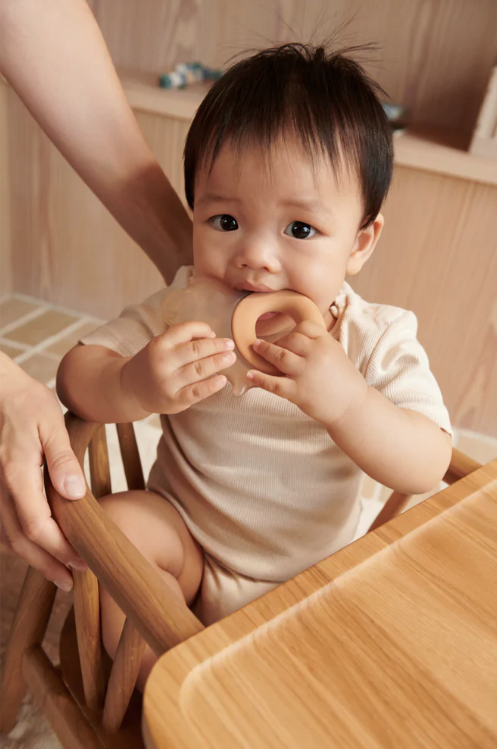 Kjølende bitering for sårt tannkjøtt i søte elefantformer. Laget av myk, næringsmiddelgodkjent EVA og destillert vann med et silikonhåndtak som kan fjernes mens biteringen er i kjøleskapet.