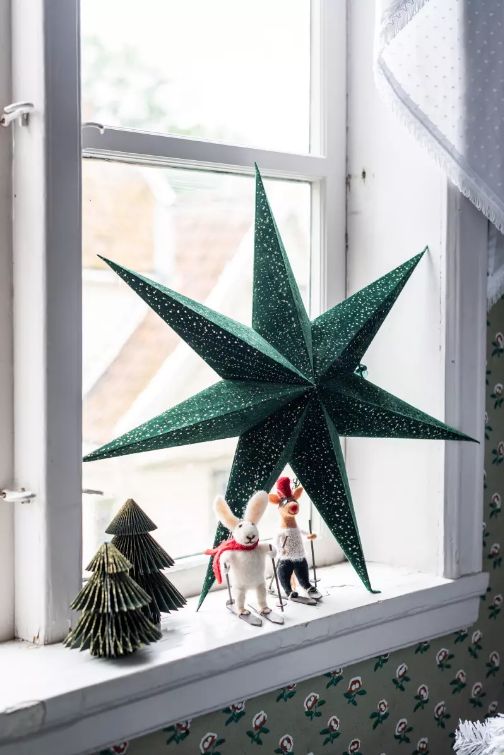 Nydelige papirstjerne til å henge i et vindu, stilt opp mot en vegg eller andre steder du ønsker. Leveres uten ledning og lysoppheng.