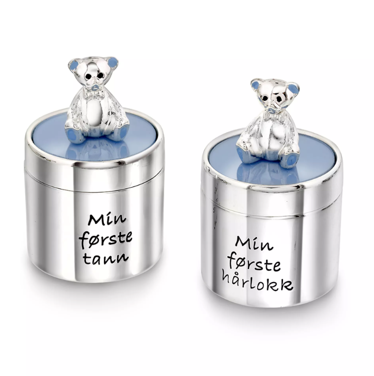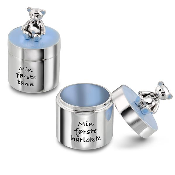 Skrin til barn "Min første tann og hårlokk" i blå