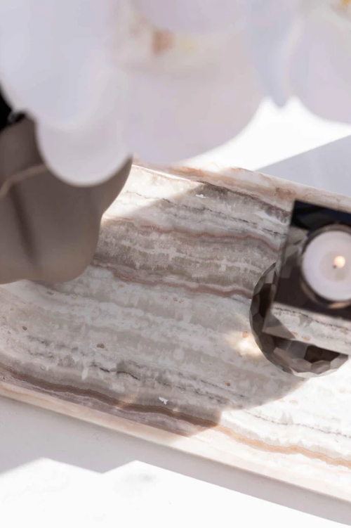 Phantom-brettet i fargen Thornado er et dekorativt og eksklusivt tillegg til interiøret som kan brukes over hele hjemmet. Det er laget av ekte marmor, hvor hvert brett har sitt eget unike fargespill og mønster. Bruk brettet til å elegant fremheve lysestaker, vaser eller dine favorittgjenstander.