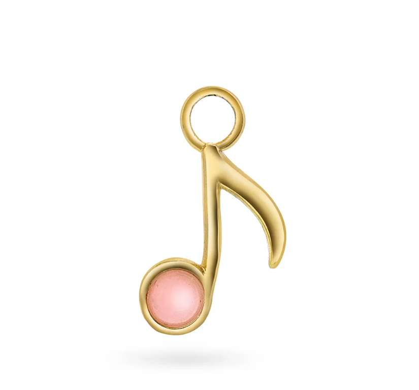 Note to Self charm i forgylt sølv og rosa opal fra Sandra Lyng x Pan Jewelry er en liten påminnelse om å følge rytmen i livet og lytte til hjertet. Rosa opal gir en dose kreativitet og kjærlighet, og noten spiller på alt som gjør deg glad. Perfekt alene, så vel som sammen med andre charms som feirer det fine i livet – med din egen melodi i sentrum.