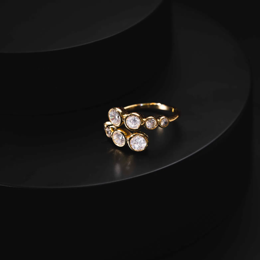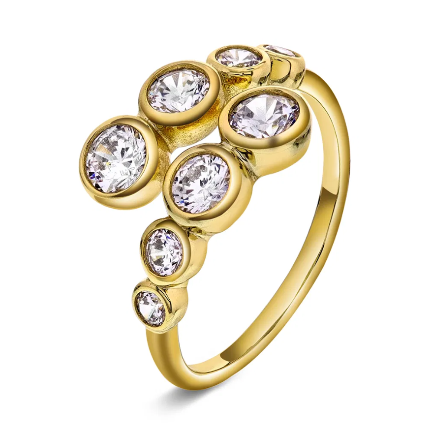 Ring i forgylt 925 sølv med hvite zirkonia steiner fra Nora Mørk by Gulldia.