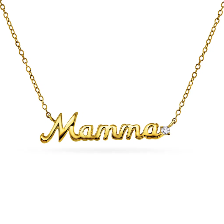 Smykke i sølv med teksten ""Mamma"" og med en glitrende zirkonia - et symbol på kjærlighet og takknemlighet. Perfekt som gave til morsdagen, en bursdag, eller bare som en spontan påminnelse om hvor mye hun betyr.