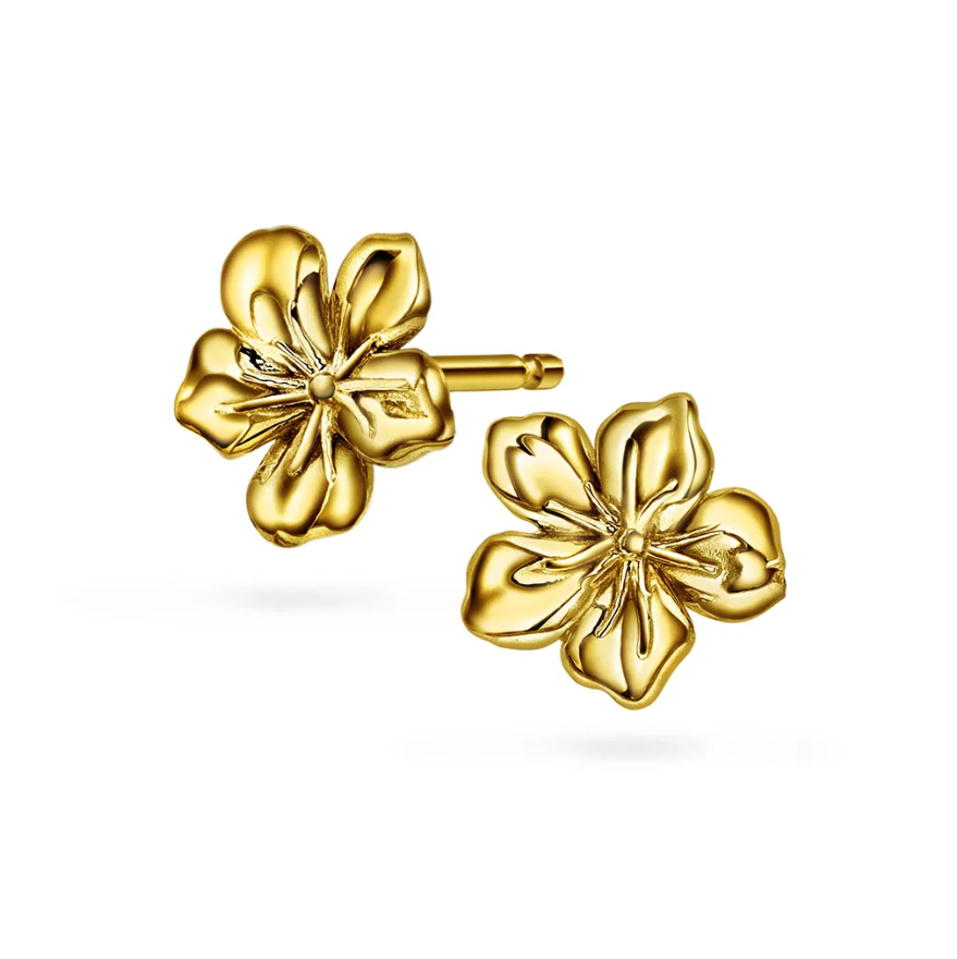 Blossom øredobber i forgylt sølv har en klassisk og vakker blomsterform som gir et lett og tidløst uttrykk. Perfekte for deg som foretrekker det elegante og nedtonede – med et snev av naturens poesi.
