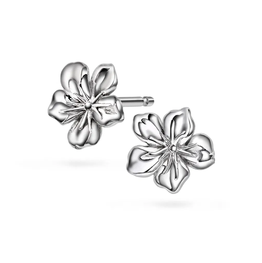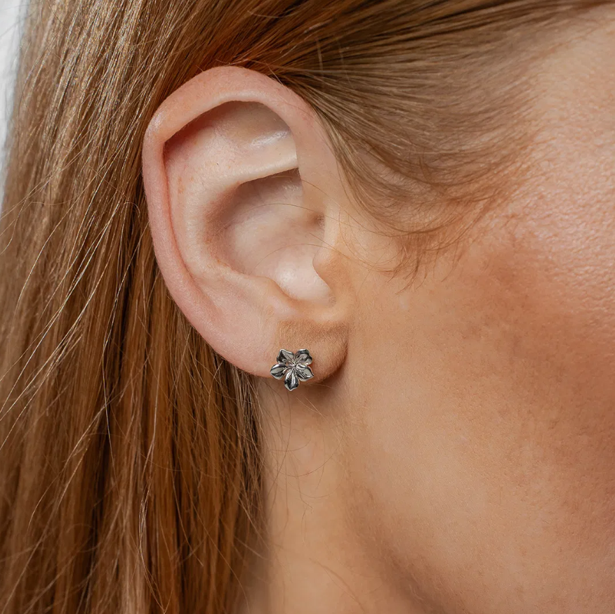 Blossom øredobber i rhodinert sølv har en klassisk og vakker blomsterform som gir et lett og tidløst uttrykk. Perfekte for deg som foretrekker det elegante og nedtonede – med et snev av naturens poesi.