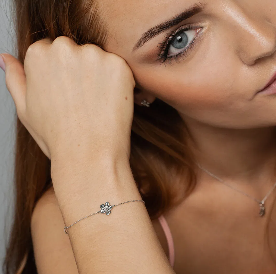 Blossom ring i rhodinert sølv med en klassisk blomst som gir et diskret, men vakkert preg. En liten blomst med stor eleganse. Den passer perfekt alene for et rent og klassisk utseende, eller sammen med andre armbånd og smykker i Blossom-serien.
