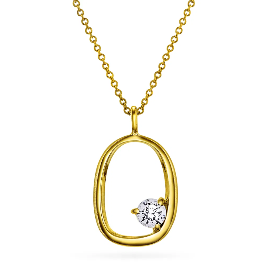 Solin smykke i forgylt sølv er designet med en oval silhuett - nesten firkantet, men myk i uttrykket. Med en glitrende sten i kanten som gir et vakkert skinn.