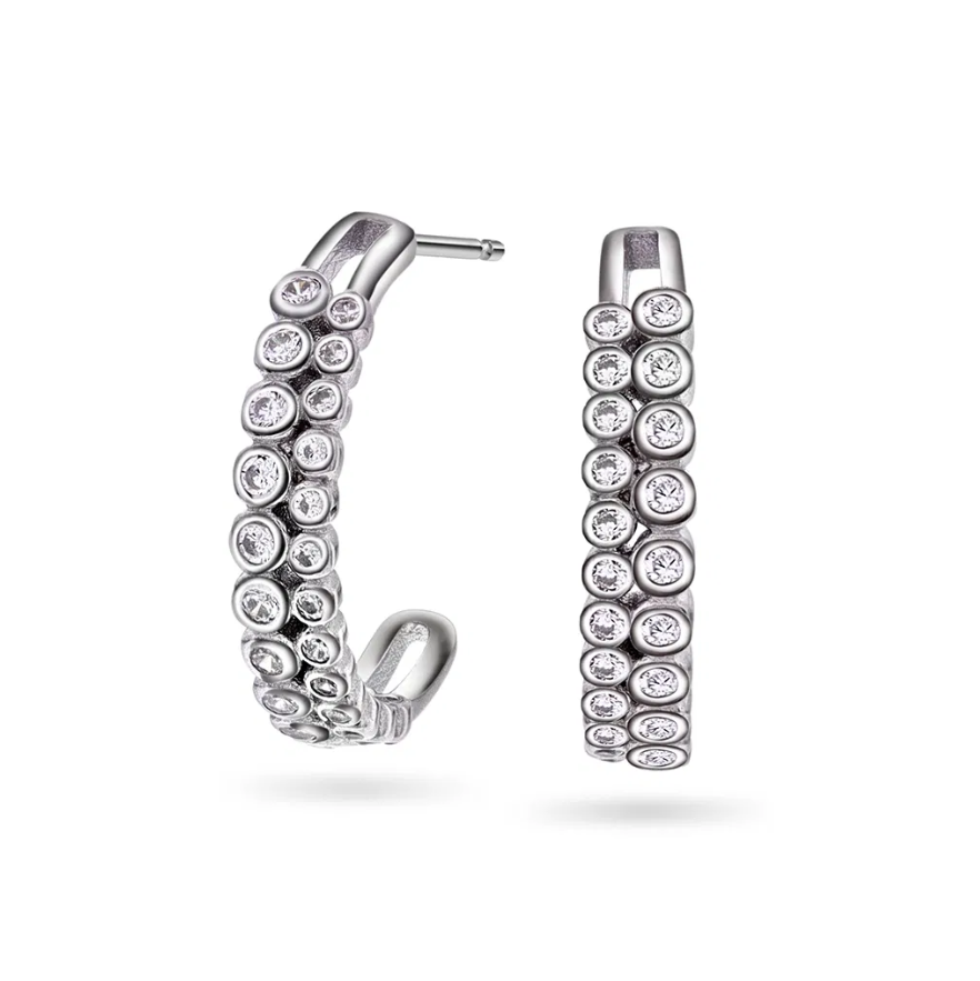 Aura øredobber i sølv med en sirkel dekorert med glitrende stener. Øredobbene har et rent og elegant uttrykk, og passer for deg som liker klassisk stil med litt ekstra glans.