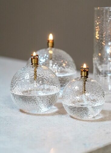 "Oljelampe Hammered" er det nyeste tilskuddet fra Peri Living - en stilren oljelampe i hamret glass formet som en ball. Oljelampen er evigvarende og lett håndterlig. Denne fylles opp med lampeolje så er den klar til bruk!