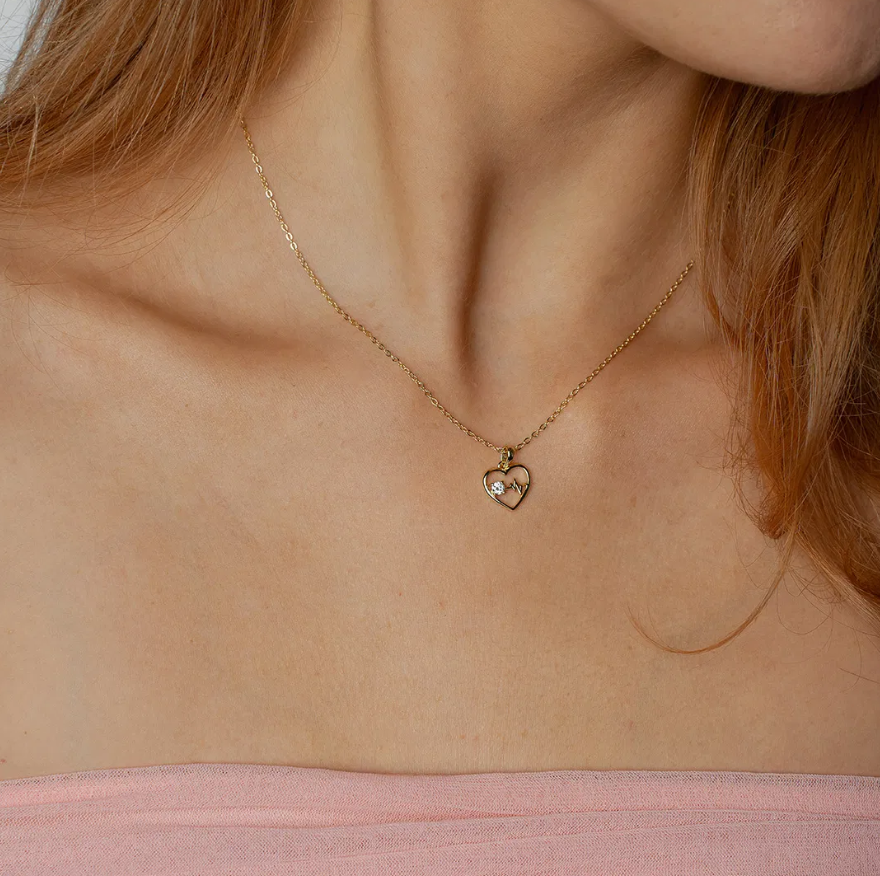 Hjertebank smykke i forgylt sølv med zirkonia og hjerte, som viser hjerterytmen - et sterkt symbol på liv, kjærlighet og de øyeblikkene som gjør at hjerte slår et ekstra slag. Et personlig uttrykk til deg selv, og som en gave til noen du er glad i.