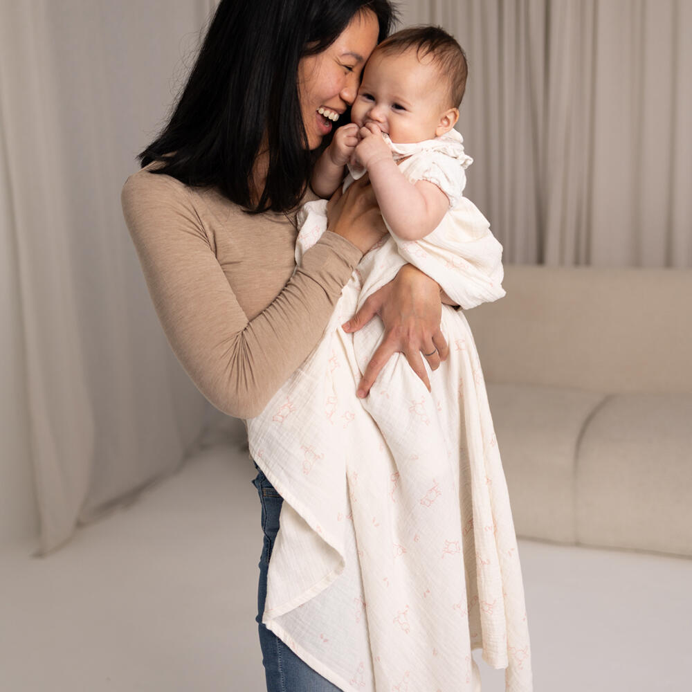 Mummi-babyteppe er et mykt og stilig tilbehør. Laget av absorberende stoff av høy kvalitet, er babyteppe skånsomme mot babyhud. Det klassiske Mummi-designet gir dem et sjarmerende preg, noe som gjør dem både praktiske og søte.