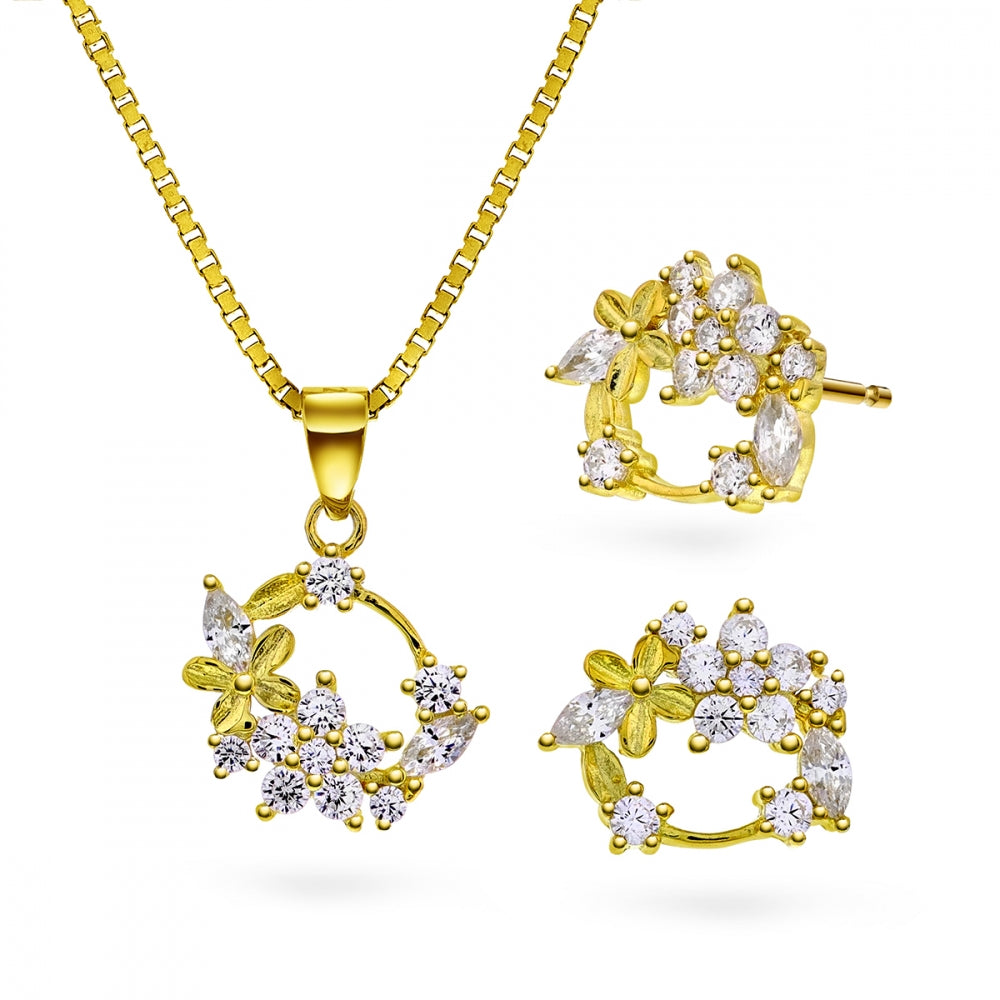Smykkesett i forgylt sølv med zirkonia